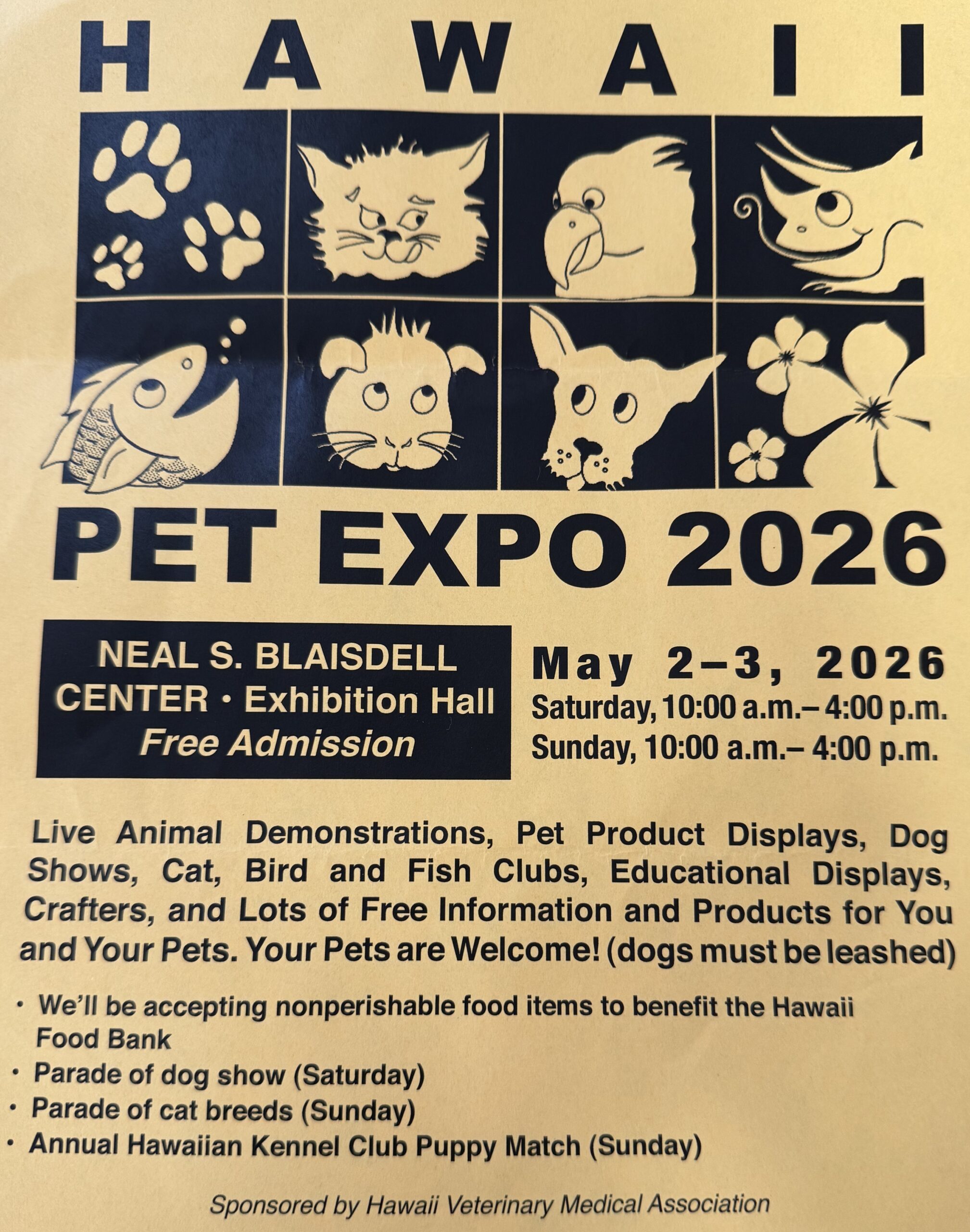 **Our Manoa shop will be closed May 2 – 5 to attend! Come and visit our booth at the Hawaii Pet Expo!**
